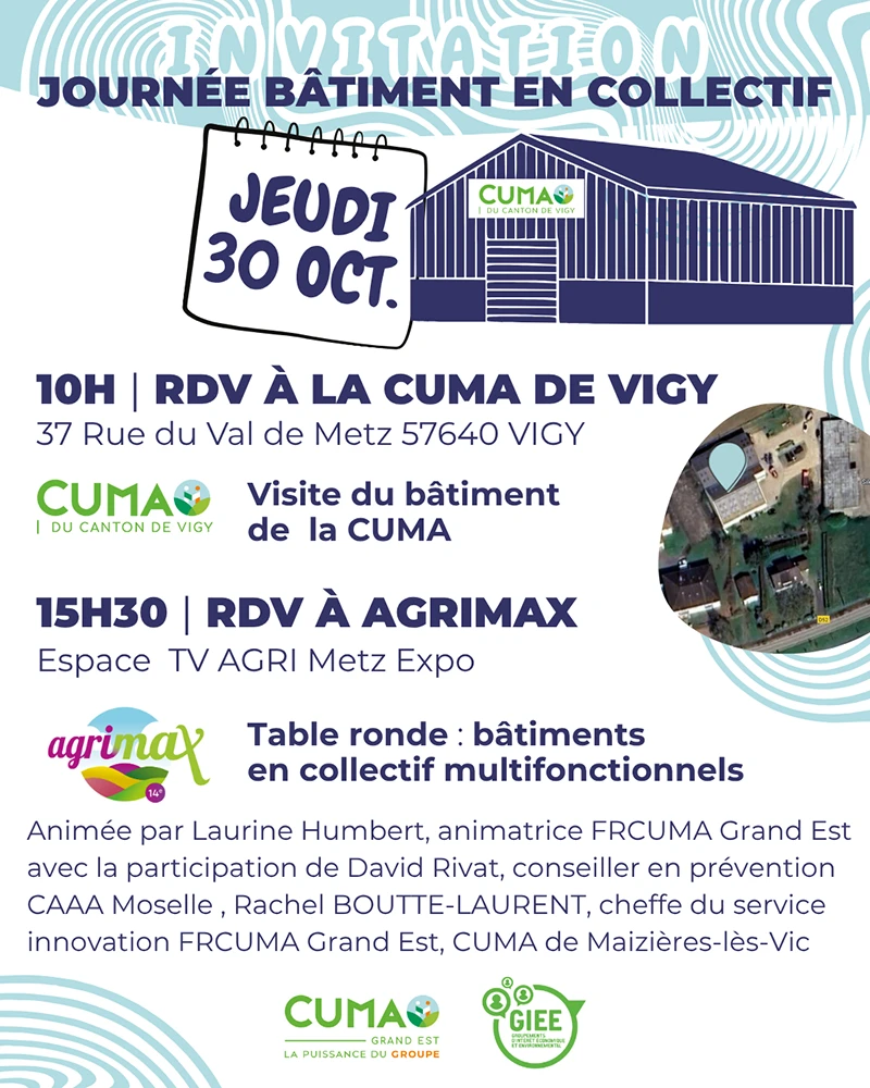 Retrouvez-nous à 10h à la CUMA de Vigy pour une visite de son bâtiment