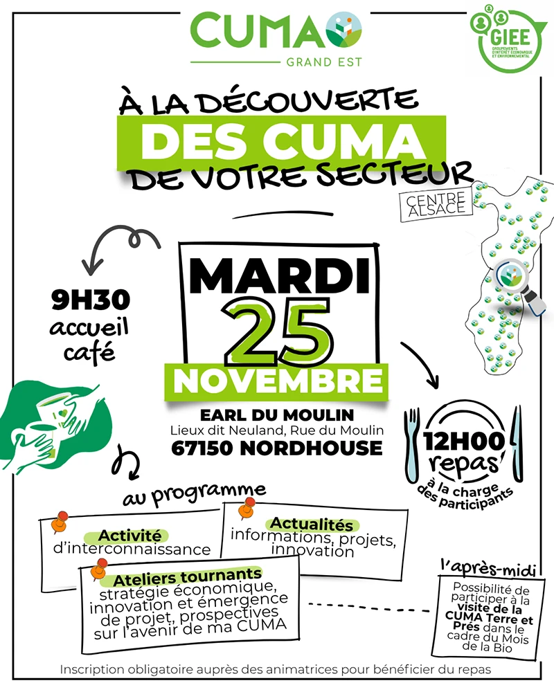 👉 Que vous soyez membre d’une CUMA depuis 20 ans ou simplement curieux, cette rencontre est faite pour vous !