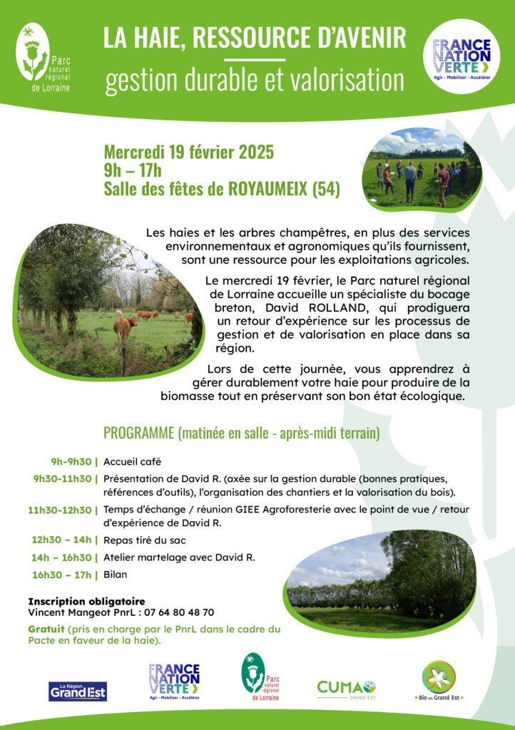 Le mercredi 19 février, le Parc naturel régional de Lorraine accueille un spécialiste du bocage breton, David ROLLAND, qui prodiguera un retour d’expérience sur les processus de gestion et de valorisation en place dans sa région.