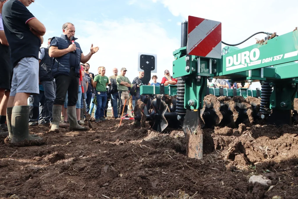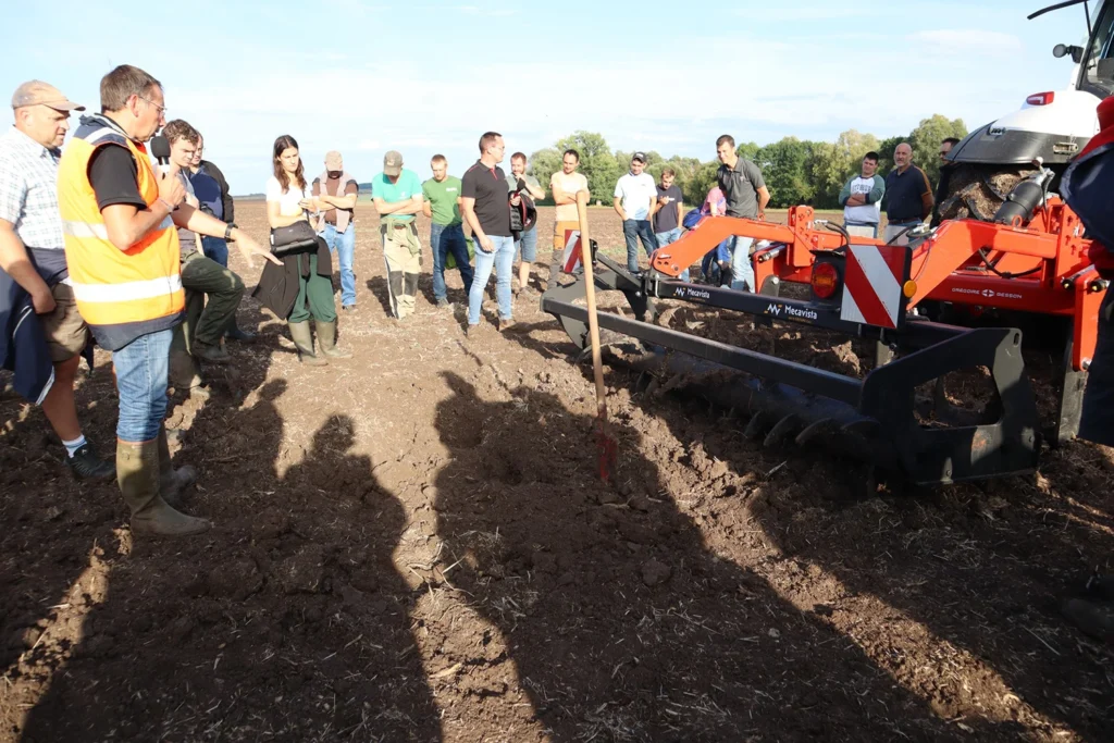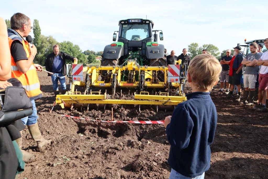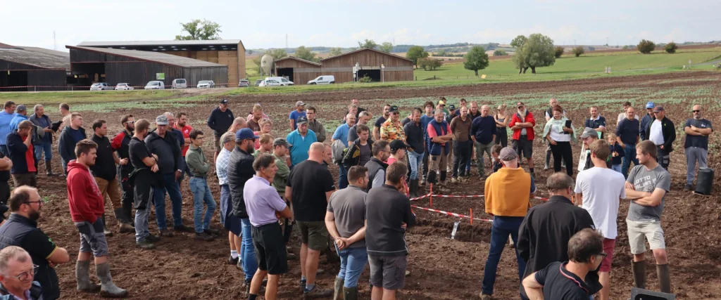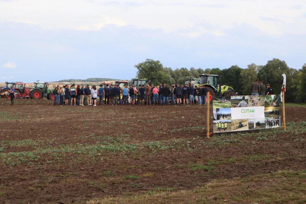C'est à Riche, sur la parcelle de Frédéric Poinsignon (Président des CUMA de la section Meurthe-et-Moselle/Moselle) que se sont retrouvés une centaine d'agricultrices et agriculteurs pour une démonstration de décompacteurs et fissurateurs, le 28 août 2025.
