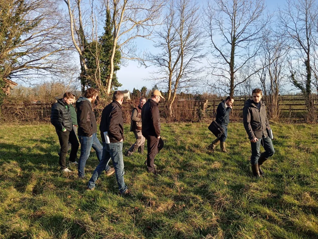 Le premier jour a été consacré à la découverte de l’exploitation de Clément Lebrun, située dans le pays d’Auge. La ferme s’étend sur 127 hectares de prairies permanentes, au sein d’un paysage vallonné fortement structuré par les haies.