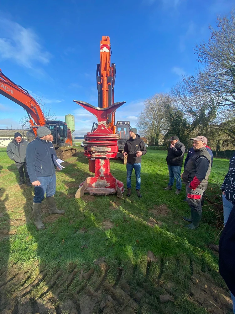 La matinée du deuxième jour a été dédiée à la gestion durable des haies bocagères et à la démonstration de matériel d’abattage. Les participants ont pu observer le fonctionnement d’un sécateur hydraulique et d’une tête d’abattage de type feller buncher, en notant les écarts d’investissement : environ 40 000 euros pour un sécateur et 125 000 euros pour la tête d’abattage. Les chantiers permettent en moyenne de traiter 70 mètres linéaires par heure, selon la configuration et l’accessibilité des haies.