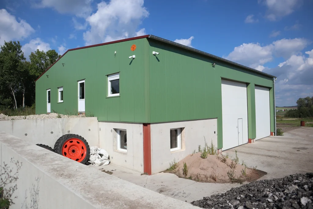 | CUMA de Maizières-lès-Vic (57) La CUMA de Maizières-lès-Vic dispose d’un bâtiment de stockage depuis 2017. Accompagnée dans le cadre d’un GIEE et d’un AMI filière manufacture, elle a vu naître un premier bâtiment intégrant un atelier de mécanique, des bureaux, une salle de réunion et de convivialité, une cuisine et des sanitaires. Un second bâtiment a suivi, consacré au stockage, équipé de panneaux photovoltaïques et d’une aire de lavage. Ces infrastructures offrent aujourd’hui un véritable confort de travail, notamment pour le salarié de la CUMA. |