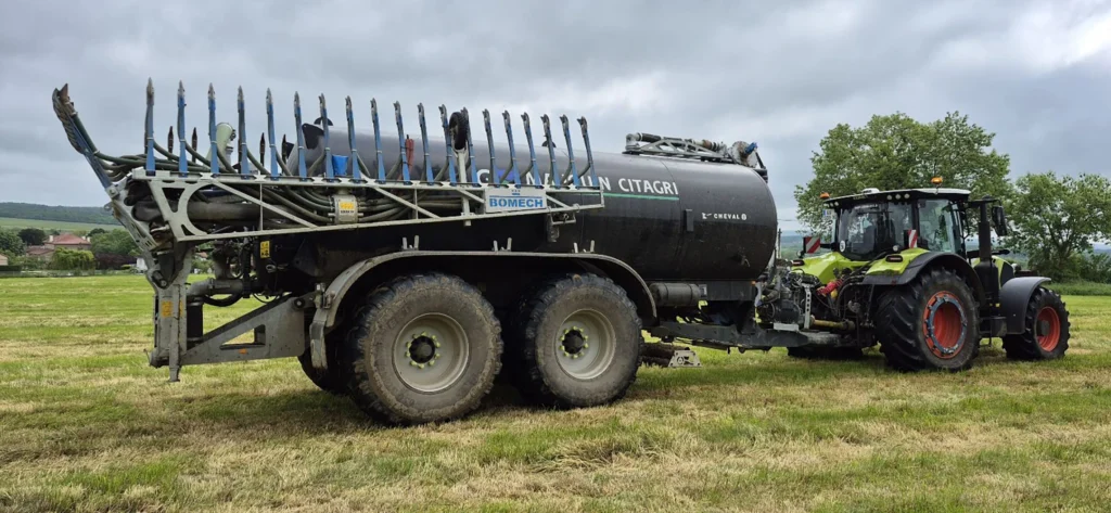 Suite aux diagnostics réalisés sur plusieurs exploitations agricoles partenaires, ayant permis de définir des pistes de réduction des émissions d’ammoniac (phases une du projet REAC’AIR), des premières mesures ont été initiées afin de quantifier les réductions d’ammoniac. Une 1ère phase d’expérimentation a été mise en œuvre en mai 2025 sur une parcelle à Praye (Meurthe-et-Moselle) visant à comparer les pertes ammoniacales selon deux méthodes d’épandages : par buse palette et par rampe à pendillard. Ces mesures ont été réalisées en testant deux types d’amendement organique (lisier et digestat).