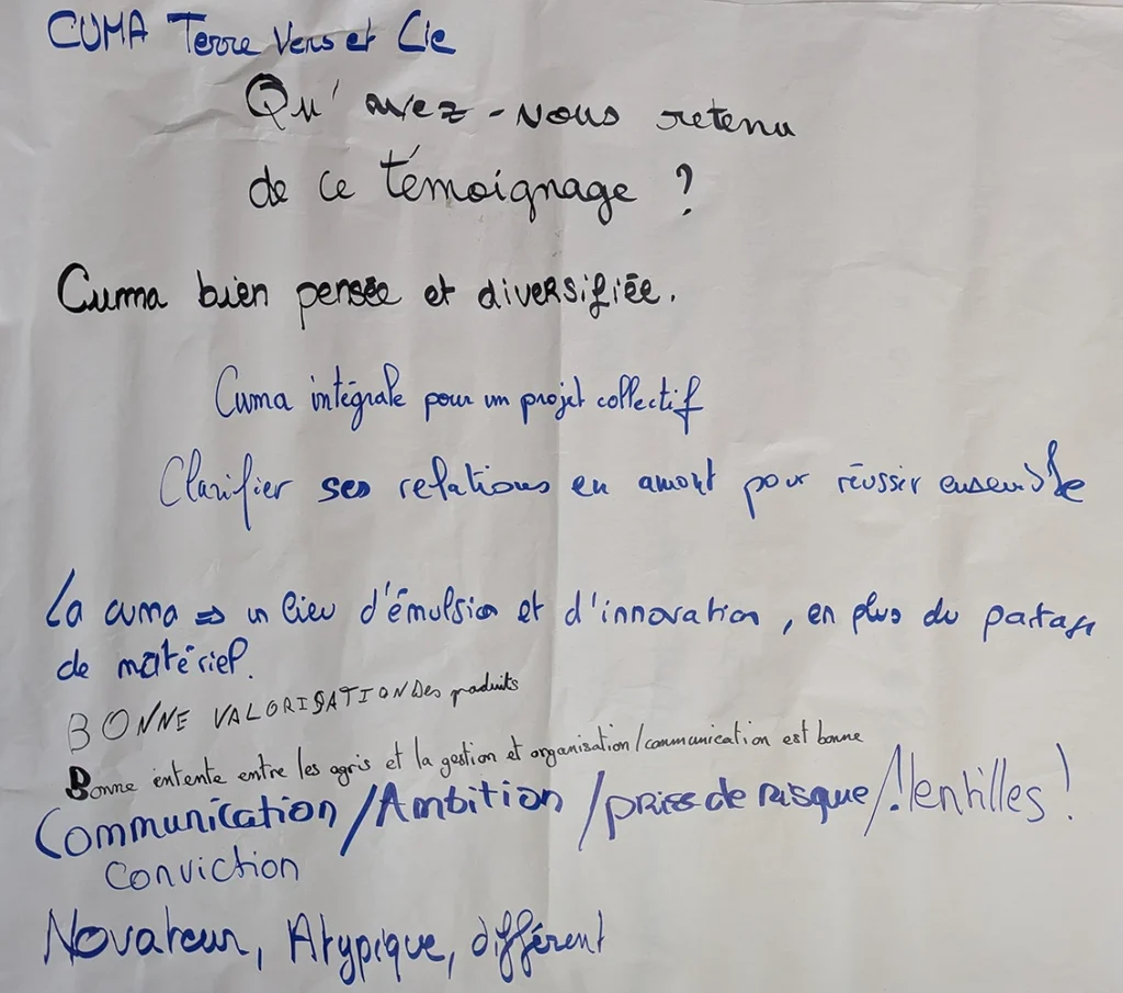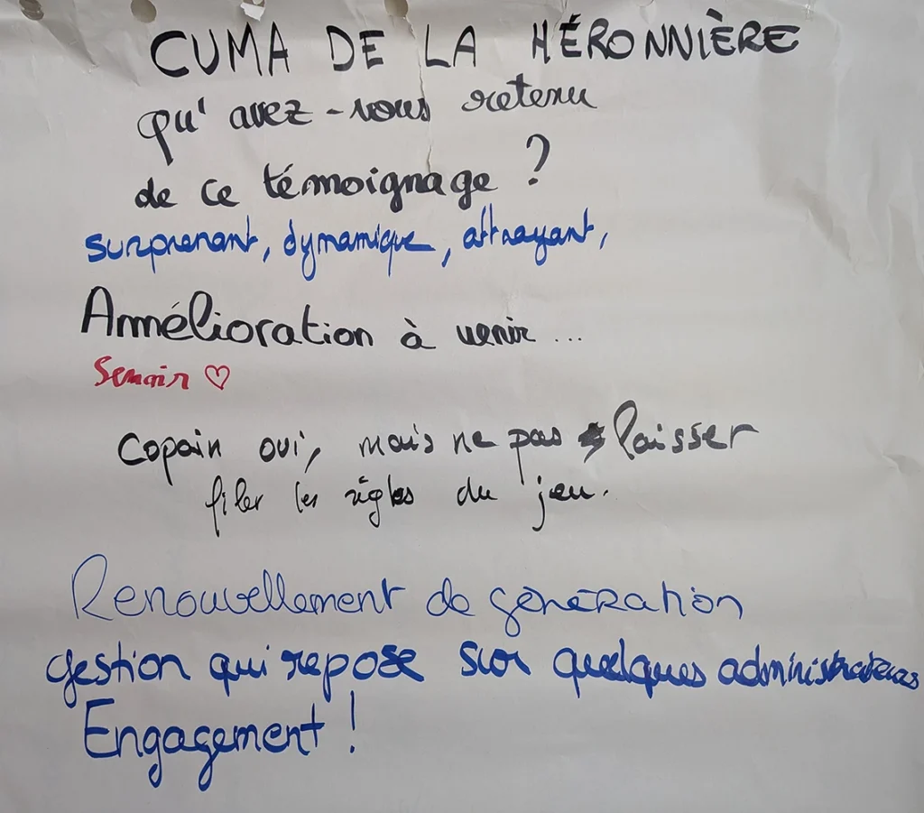 Sur chaque kiosque, c’est à chaque fois un double partage : les CUMA qui témoignent de leur organisation et de leurs projets nous inspirent, et les échanges avec les cumistes, les partenaires et les étudiantes et étudiants venus les écouter ouvrent de nouvelles portes, et invitent à réflechir à d’autres idées.