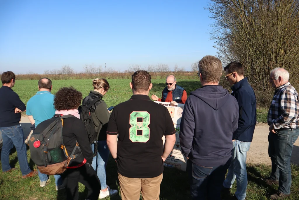 Obern’Haies : Freddy Merckling a présenté la partie agroforesterie du lycée : un projet agroécologique qui mobilise les haies pour concilier biodiversité, stockage du carbone et performance des systèmes de culture en agriculture biologique.